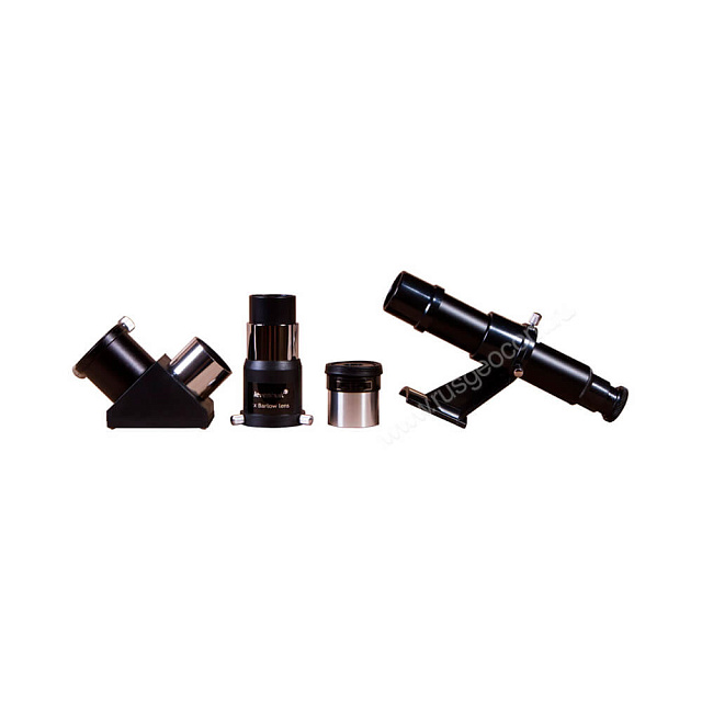 В комплект рефрактора включены все необходимые аксессуары, в том числе диагональная призма, необходимая для комфортного изучения наземных объектов. Во время работы все элементы комплекта можно разместить на специальном лотке, который монтируется на штатив. Ножки алюминиевой треноги регулируются по высоте независимо, что позволяет выставить оборудование оптимальным образом на неровной поверхности.