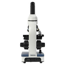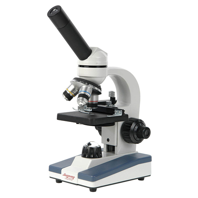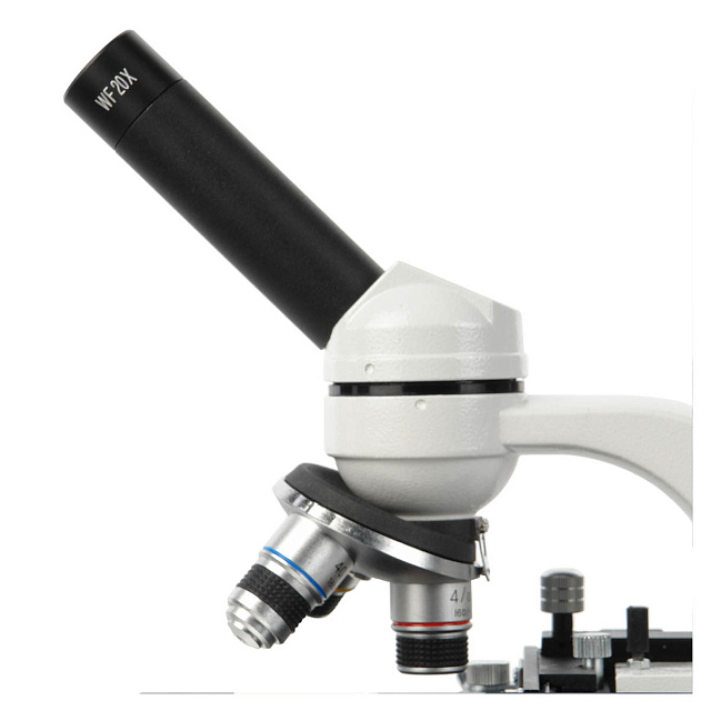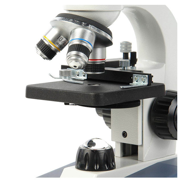 Микроскоп поставляется с объективами-ахроматами увеличением 4х, 10х и 40х, что позволяет получать высококачественные изображения и детально изучать образцы. Каждый объектив имеет цветовую маркировку, соответствующую увеличению, что упрощает их использование и смену во время исследования. Объективы устанавливаются в револьверное устройство с тремя гнездами, обеспечивая быструю и удобную смену увеличения без прерывания работы.