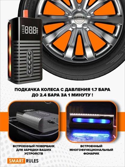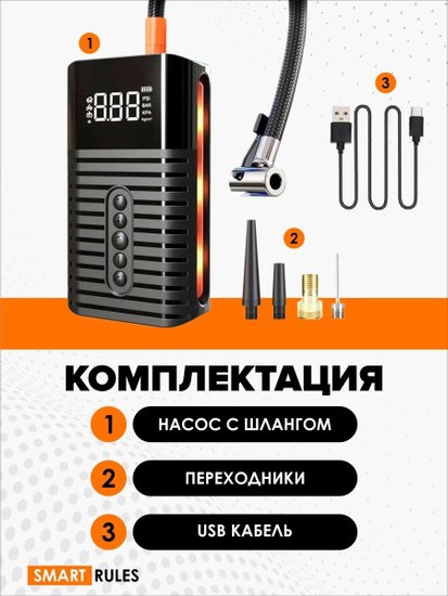 • Комплект поставки - Компрессор автомобильный; - переходники; - USB кабель; - шланг; - инструкция.