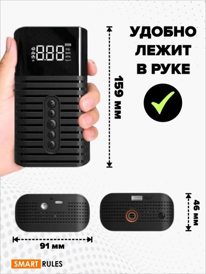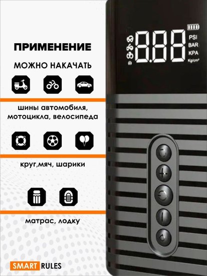 • Функциональные особенности автоотключение при достижении заданного давления, зарядка телефона