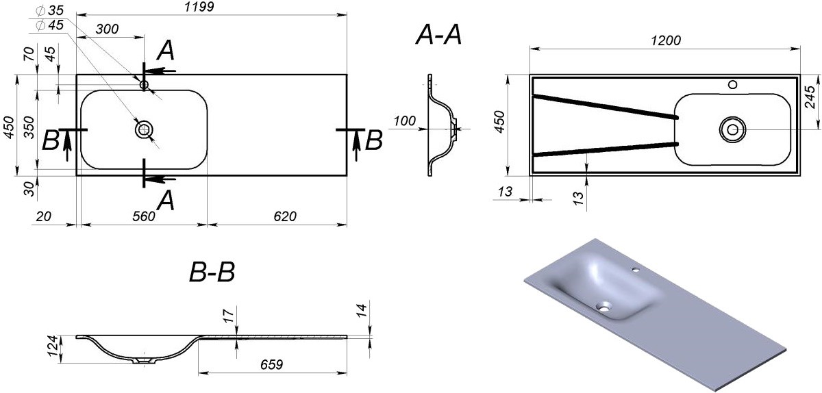 - Габариты (ШхГхВ) 1200x450x124 мм