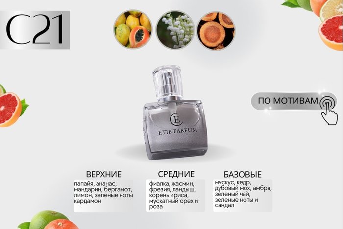 - Ароматные ноты древесные, зеленые, мускусные, пряные, фруктовые, цветочные, цитрусовые