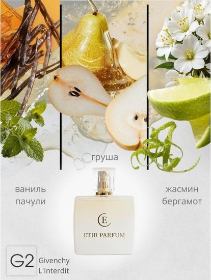 - Ароматные ноты ванильные, древесные, мускусные, пряные, фруктовые, цветочные