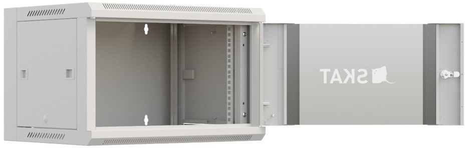 Шкаф коммутационный Бастион SKAT TB-9W660GF-G (4420) настенный 9U 600x600мм пер.дв.стекл металл направл.под винты 60кг серый 500мм 22кг 220град. 500мм IP20 сталь укомплектованный