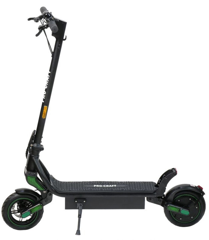 Procraft DS-500L - самокат, оснащенный электродвигателем мощностью 500 Вт, развивающий скорость до 25 км/ч. Аккумуляторная батарея Li-Ion напряжением 48В и емкостью 13 Ач позволяет преодолевать дистанции на одном заряде до 59 км. Вес устройства составляет всего чуть больше 20 кг, а механизм складывания и компактность обеспечивает удобство хранения.