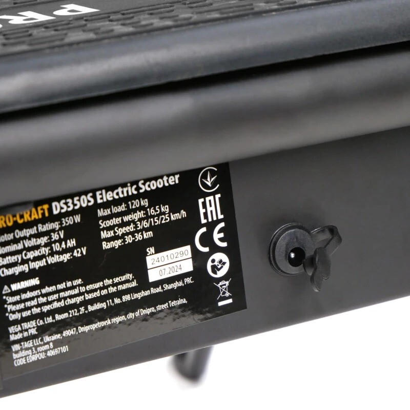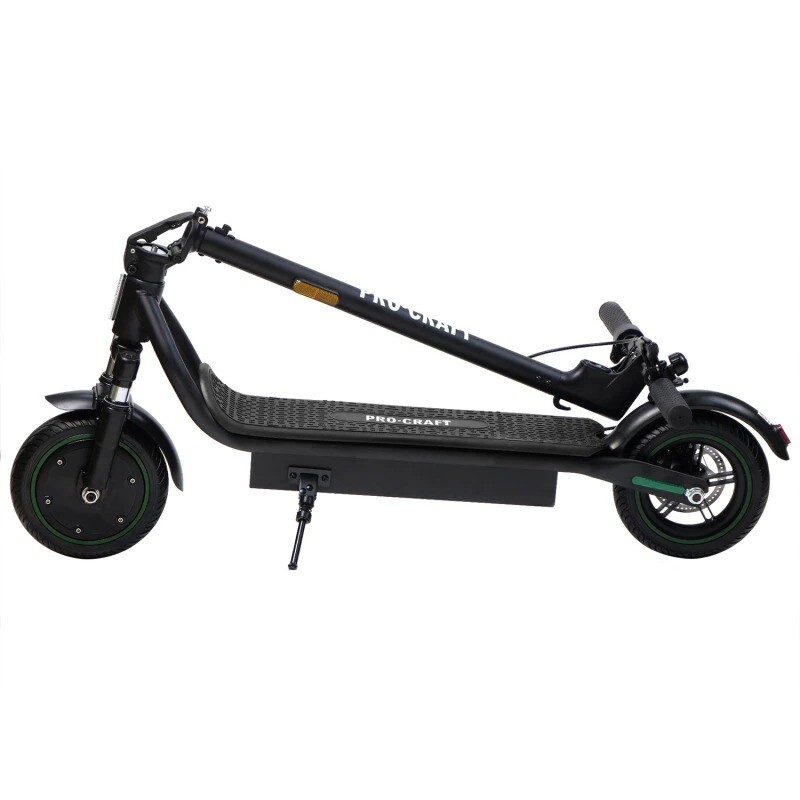 Procraft DS-350S представляет собой мобильное транспортное средство с электродвигателем, разгоняющимся до 25 км/ч. Оснащенный аккумулятором емкостью 10.4 Ач, он способен преодолевать на одном заряде до 36 км. Надежность обеспечивается прочной конструкцией и колесами 8.5 дюймов в диаметре, которые хорошо подходят для городских дорог.