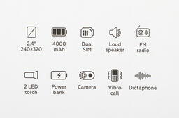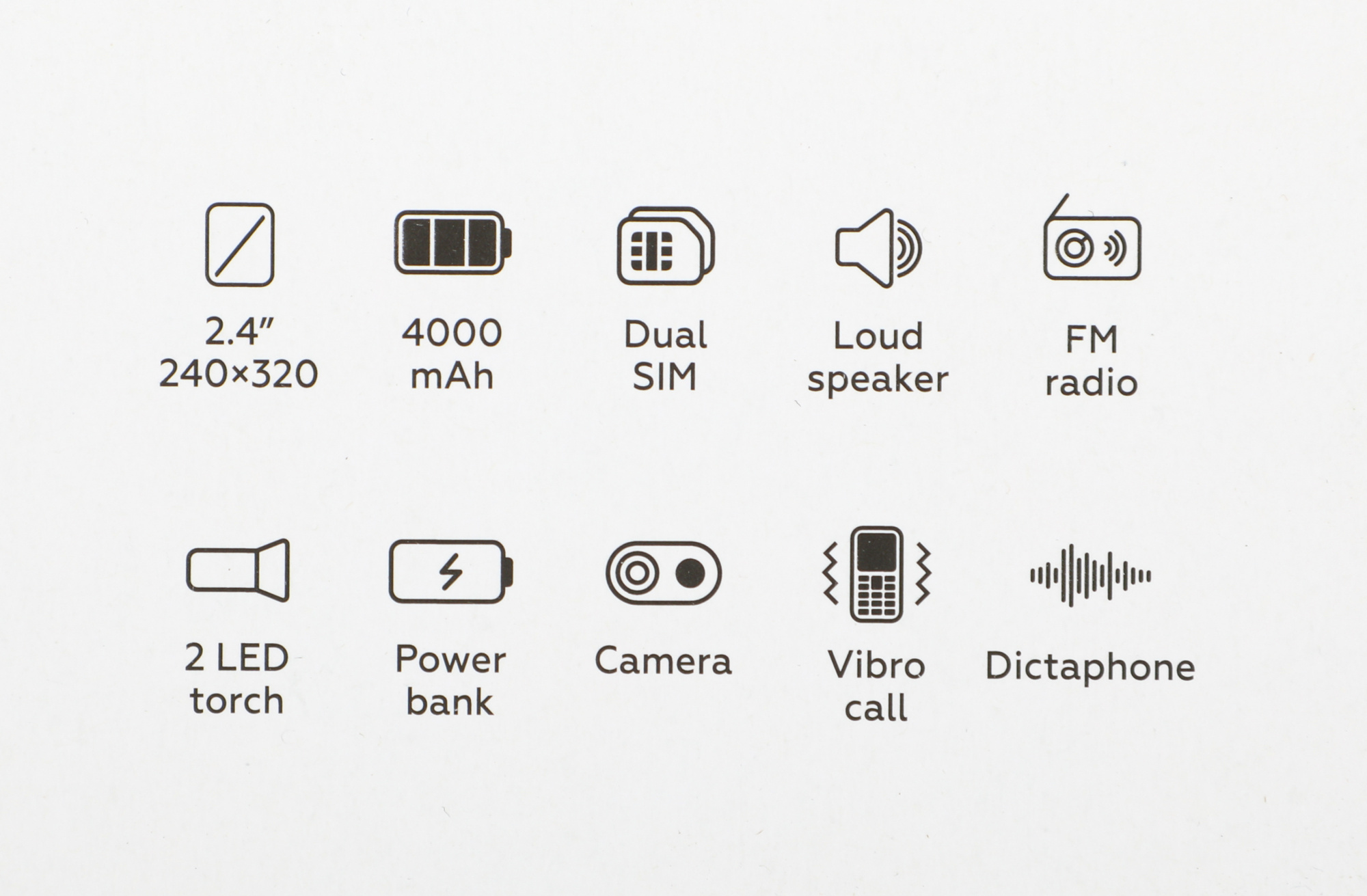 • Особенности Bluetooth,вибро, 2 фонарика, громкий динамик, функция Powerbank, радио работает без наушников