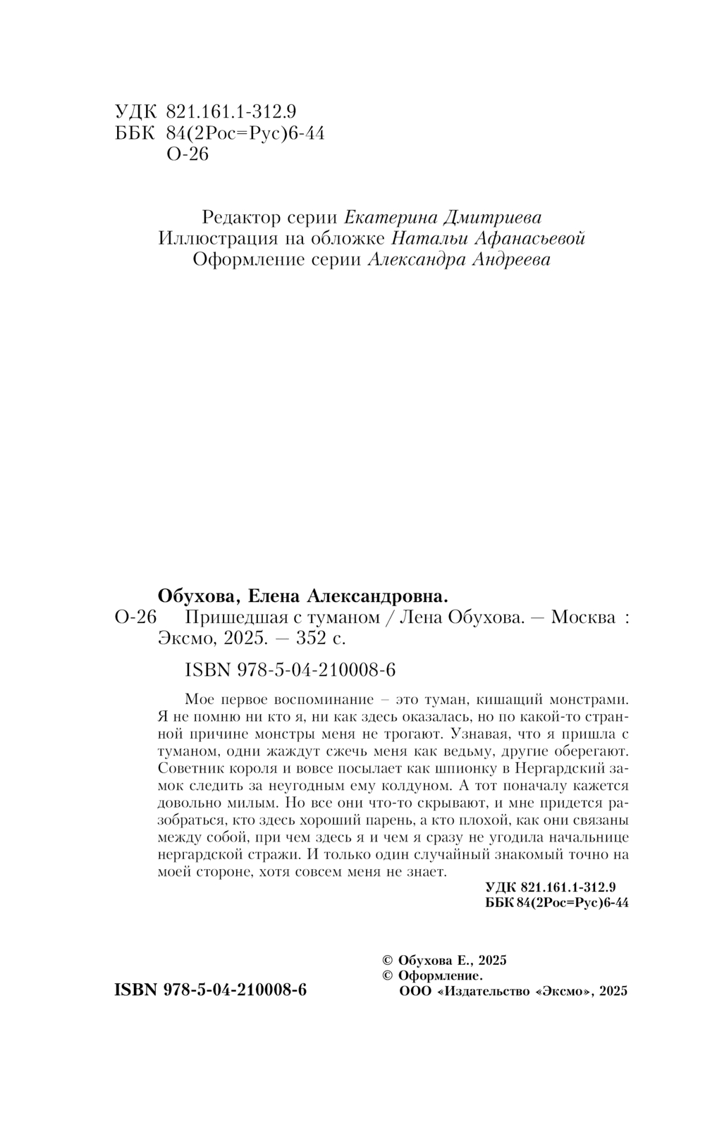 Книга Эксмо Пришедшая с туманом, мягкая обложка (Обухова Елена)
