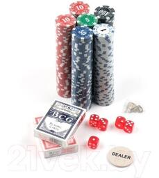- Комплектация набора для покера кубик, колода карт, фишки игрока, фишка диллера