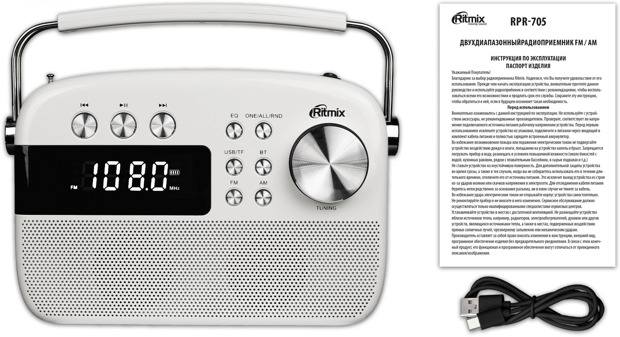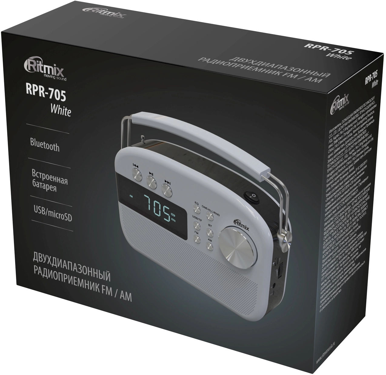 Радиоприемник портативный Ritmix RPR-705 белый USB microSD