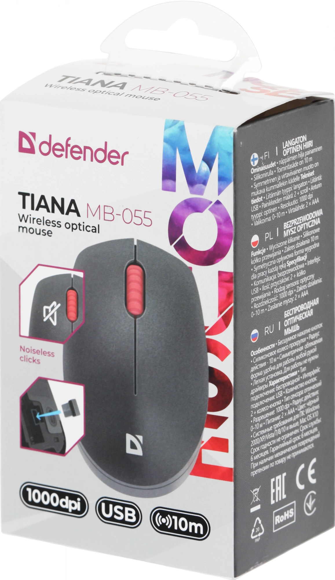 Мышь Defender Tiana MB-055 черный оптическая 1000dpi silent беспров. USB 2but (52055)