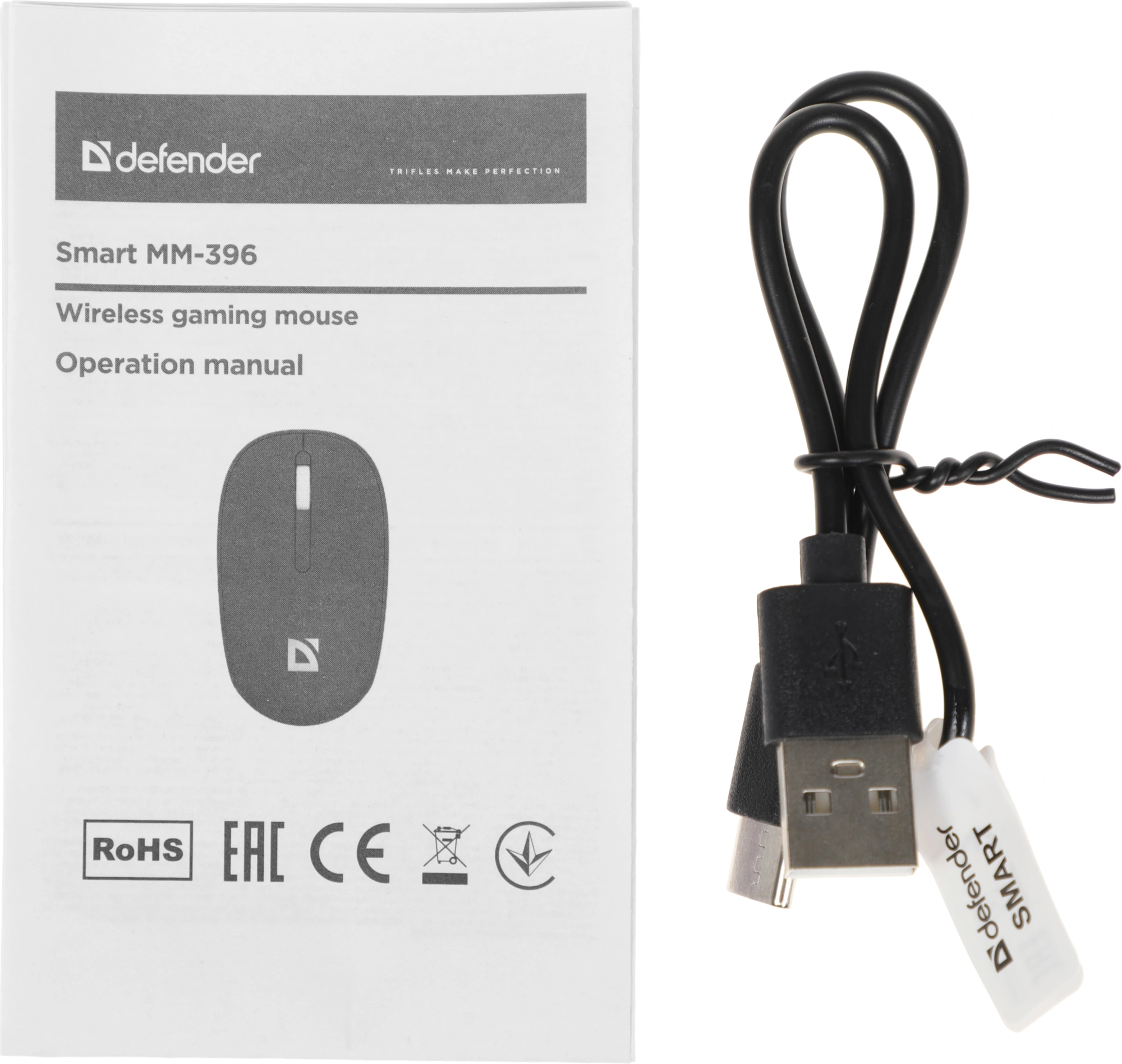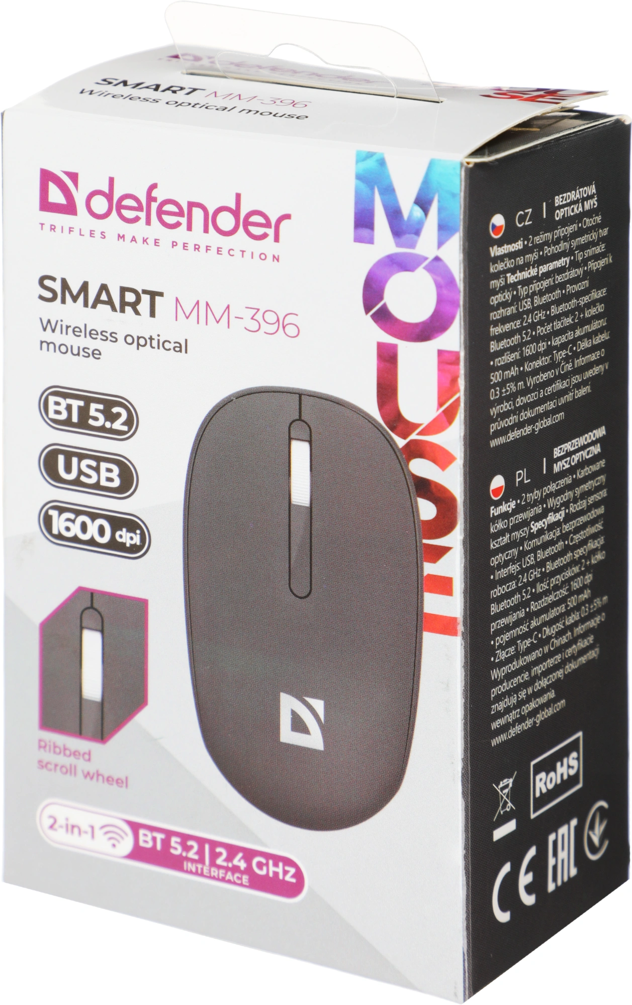 Мышь Defender Smart MM-396 черный оптическая 1600dpi беспров. BT/Radio USB (52396)