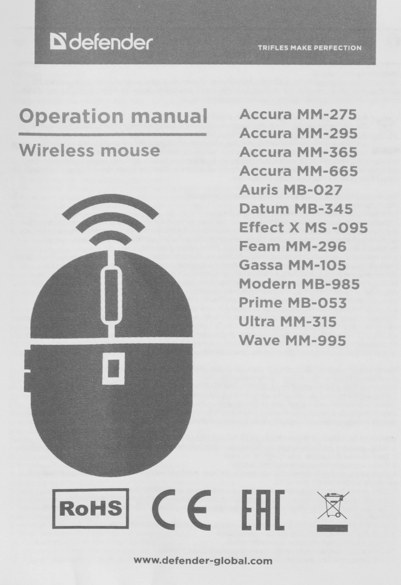 Мышь Defender Gassa MM-105 черный оптическая 1600dpi silent беспров. USB 5but (52105)