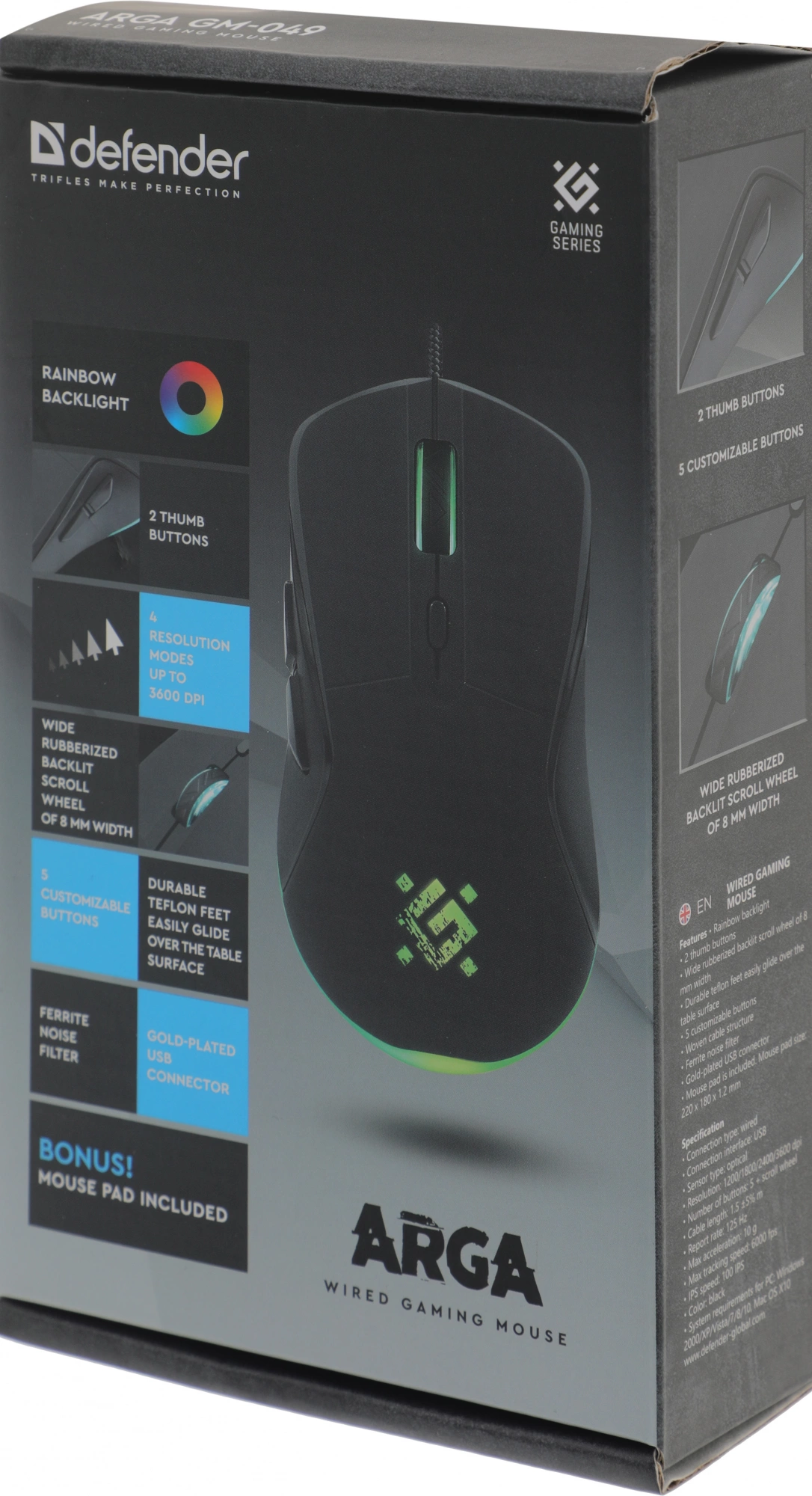 Мышь Defender Arga GM-049 черный оптическая 3600dpi USB 5but (52049)