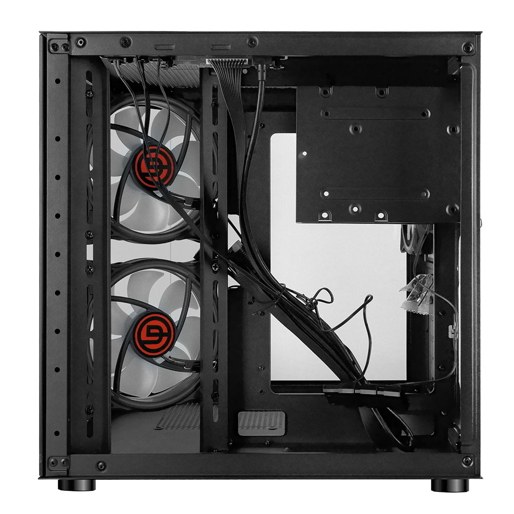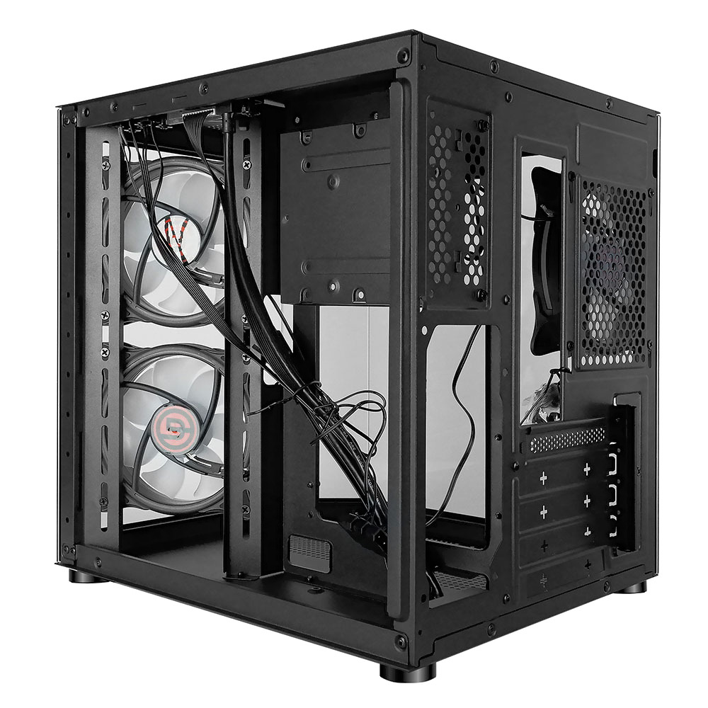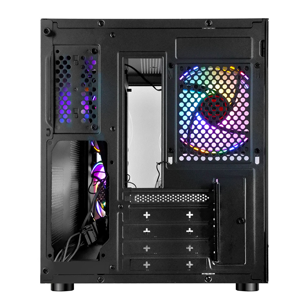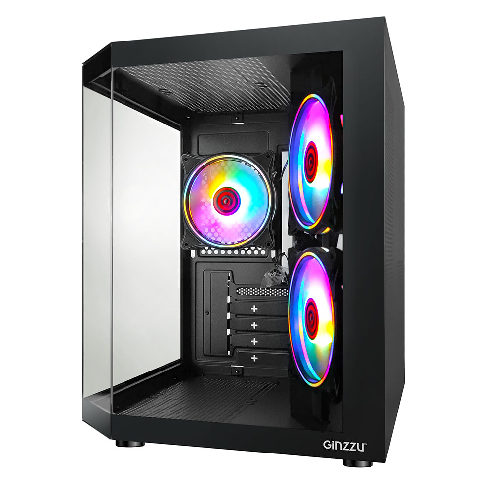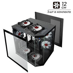 • Расположение вентиляторов снизу (2×120 мм), сверху (2×120 мм), спереди (2×120 мм), сзади (1×120 мм)