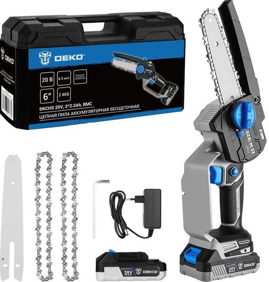 - Комплект поставки - Пила- Защитный кожух.- Шина - 2 шт.- Цепь - 3 шт.- АКБ - 2 шт.- Барашек регулировки натяжения- Зарядное устройство- Шестигранный ключ- Крепежный комплект (винт, шайба, пружина )- Кейс- Инструкция- Гарантийный талон