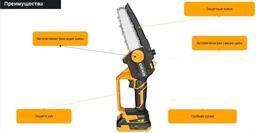 • Комплект поставки - Пила - 1 шт- АКБ - 1 шт- Защитный кожух - 1 шт- Шина - 1 шт- Цепь - 1 шт- Зарядное устройство - 1 шт- Шестигранный ключ - 1 шт- Крепежный комплект (шайба - 1 шт, пружина - 1 шт, винт - 1 шт) - 1 шт- Руководство по эксплуатации - 1 шт- Упаковка: картонная коробка