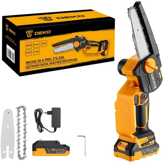 - Комплект поставки - Пила- Аккумулятор 2 шт- Зарядное устройство- Инструкция- Цепь 4"/6"- Гарантийный талон