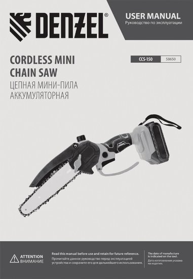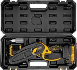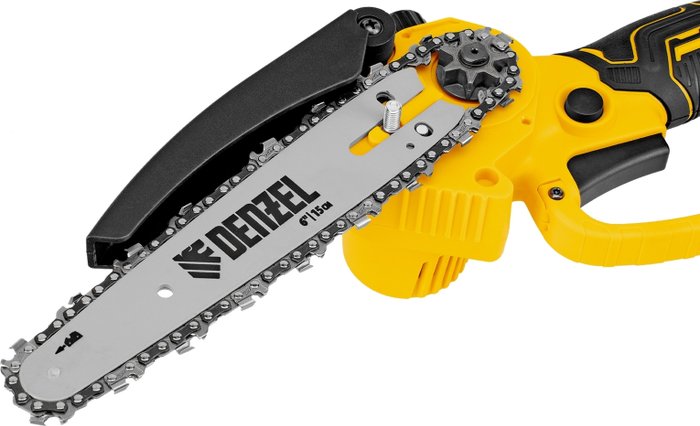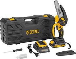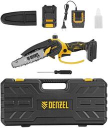 Комплект поставки- Мини-пила цепная аккумуляторная;- Масленка;- Аккумуляторная батарея Denzel Power System;- Зарядное устройство;- Кейс;- Инструкция по эксплуатации с гарантийным талоном.