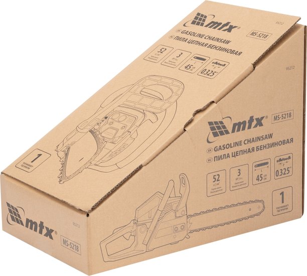 • Комплект поставки - Пила цепная бензиновая;- Шина;- Чехол шины;- Цепь;- Емкость для приготовления смеси;- Комплект инструментов;- Руководство по эксплуатации и гарантийный талон.