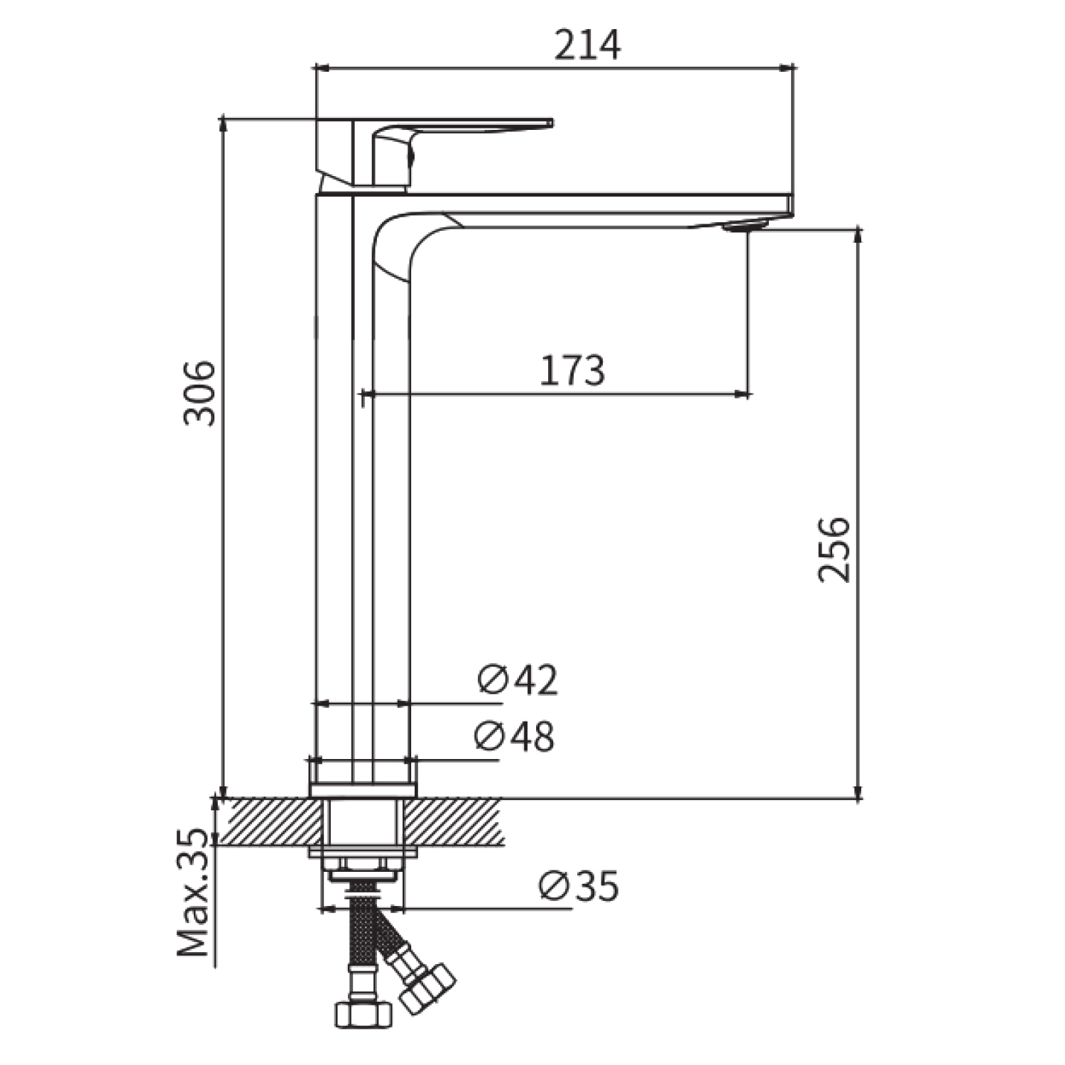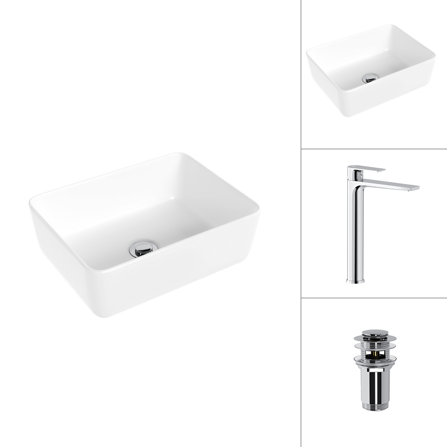 Умывальник со смесителем Lauter 21674B + Reef 21CK8678C с донным клапаном 21190CH (хром)