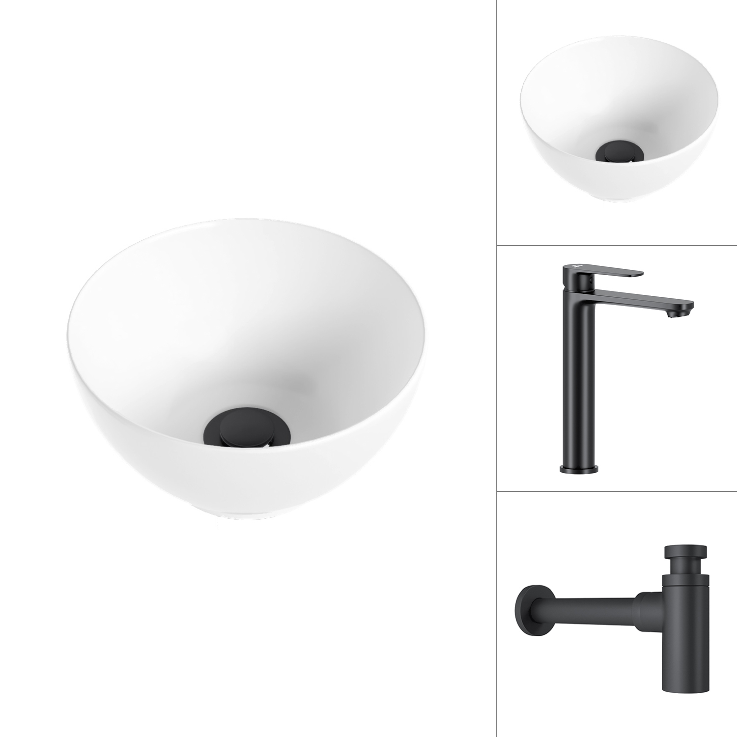 Умывальник со смесителем Lauter 21601E + Moon 21СК8691BS с сифоном 21635B (черный матовый)
