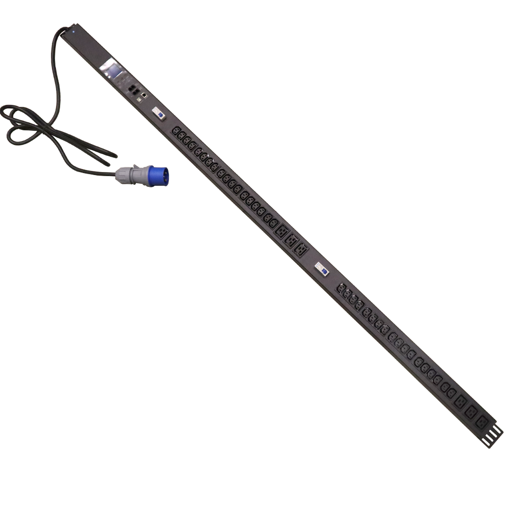 Однофазный блок сетевых розеток используется для распределения электропитания в телекоммуникационных шкафах и стойках. Блок оснащен встроенным кабелем питания с разъемом IEC309 (на 32А), 6 розетками C19 и 36 розетками C13.