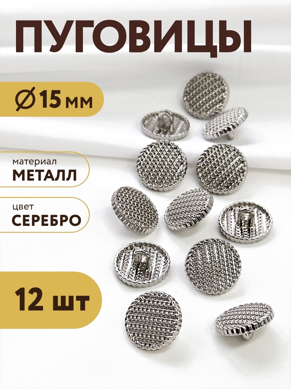 Набор пуговиц Sentex MN-19 15мм / MN-19-15 (12шт, серебристый)