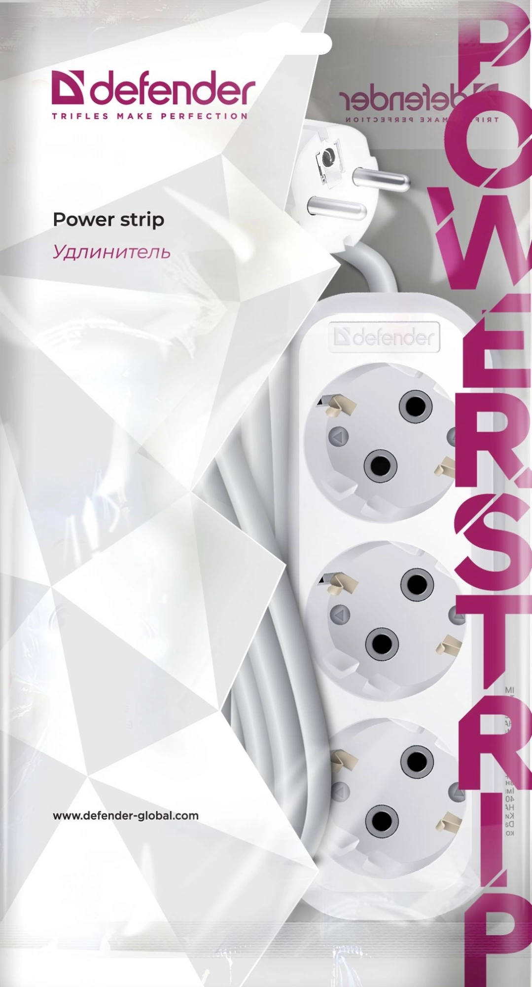 Сетевой удлинитель Defender R330 7м (3 розетки) белый (пакет ПЭ)