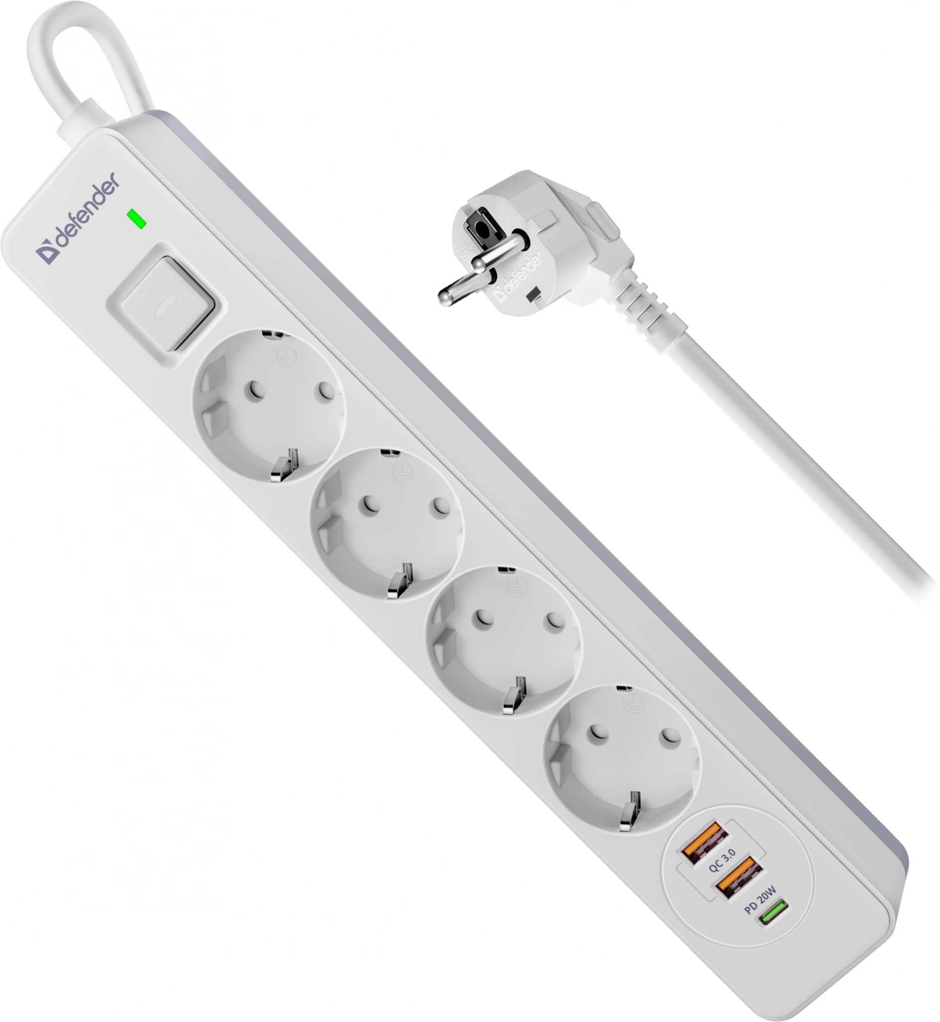 Сетевой фильтр Defender DFS 145 5м (4 розетки) белый (коробка)