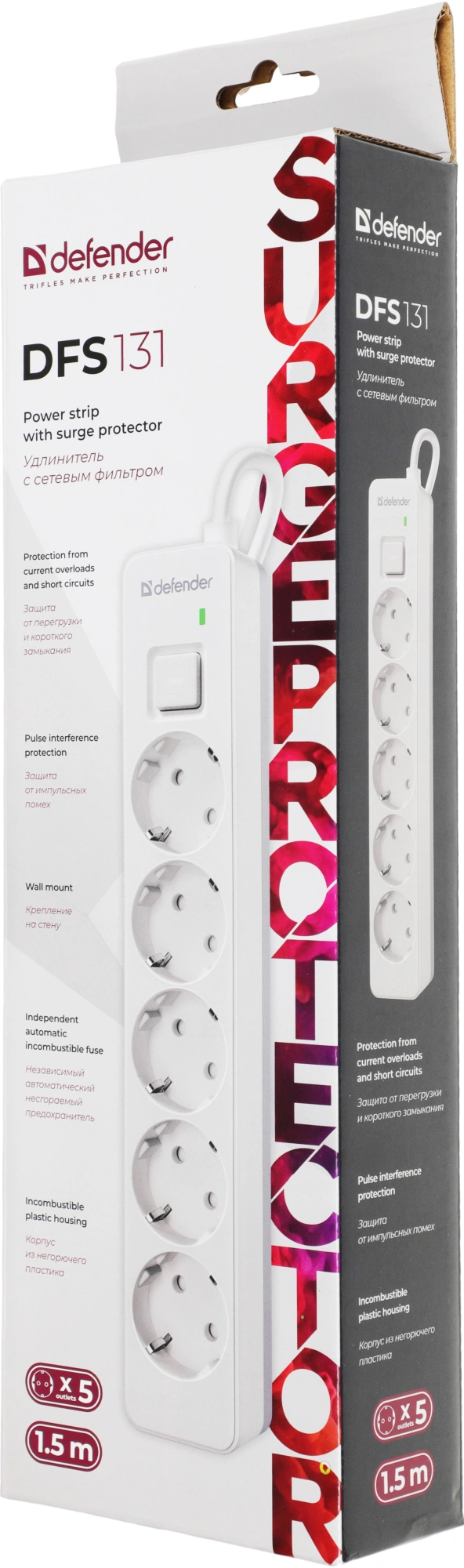 Сетевой фильтр Defender DFS 131 1.5м (5 розеток) белый (коробка)