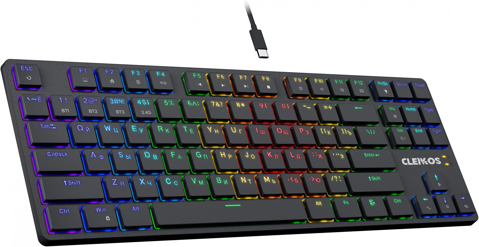 Клавиатура Defender Cleikos GK-135 механическая черный USB беспроводная BT/Radio slim Multimedia для ноутбука LED (45135) кабель 1.8м