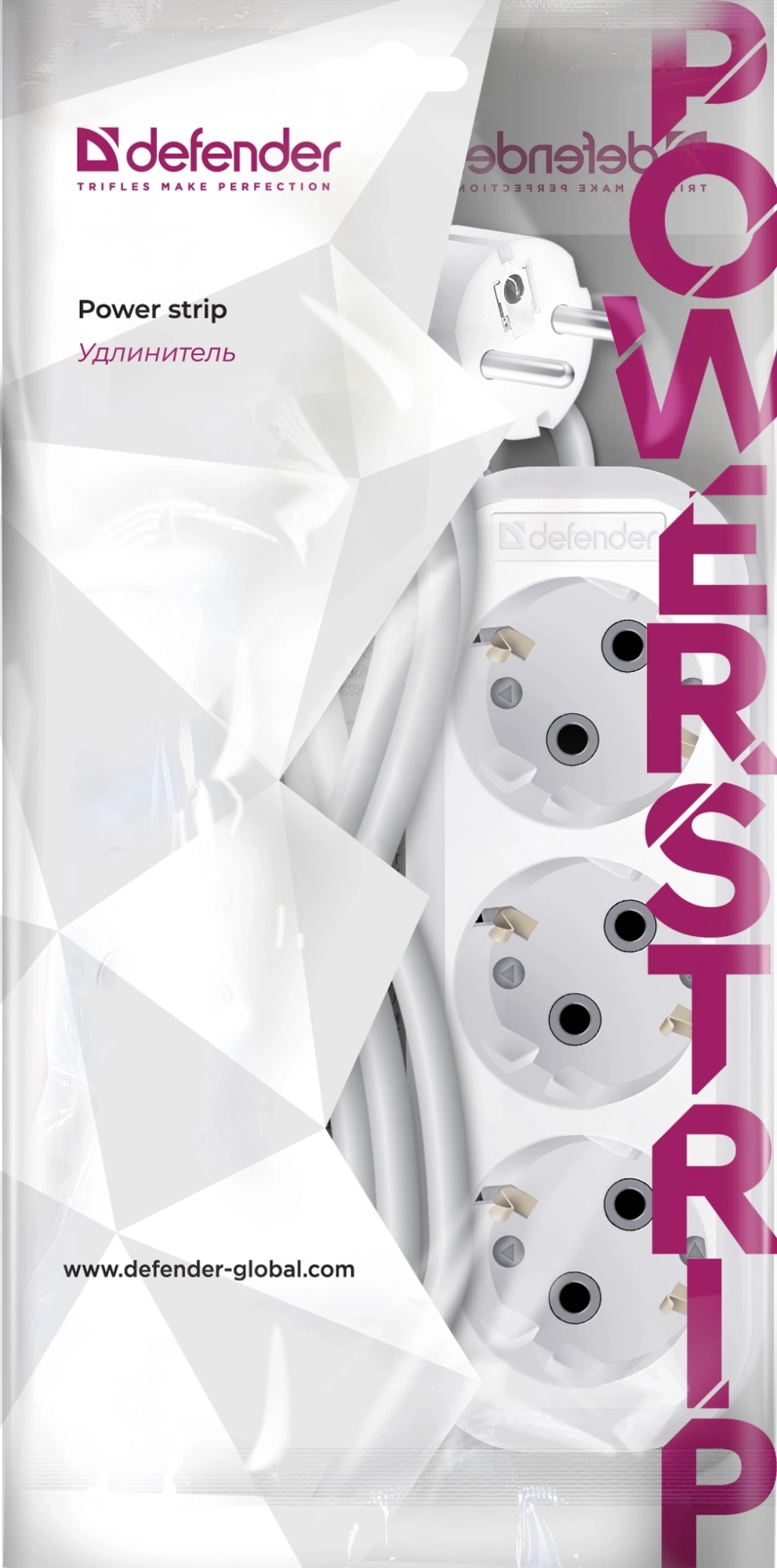 Сетевой удлинитель Defender R330 3м (3 розетки) белый (пакет ПЭ)