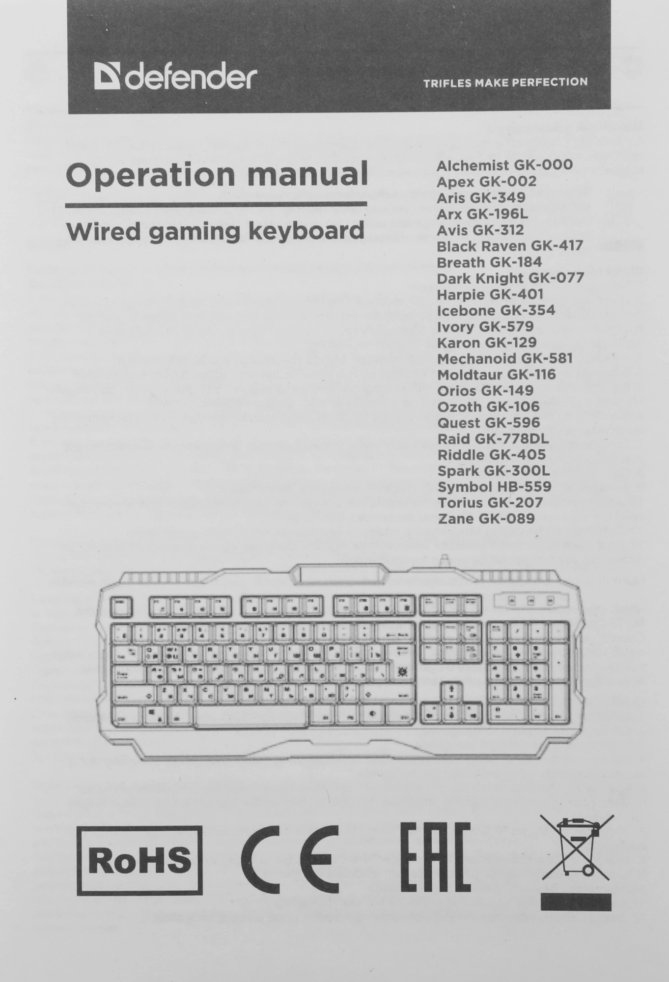 Клавиатура Defender Dark Knight GK-077 черный/белый USB Multimedia for gamer LED (45077)