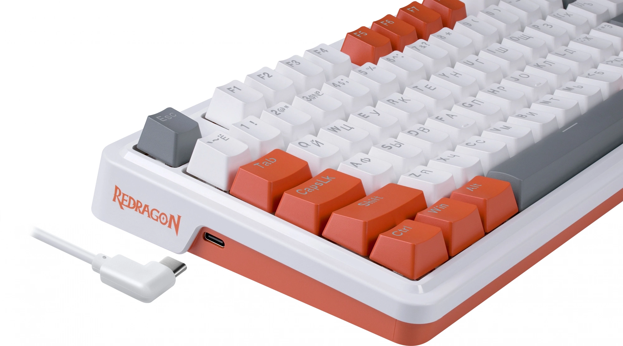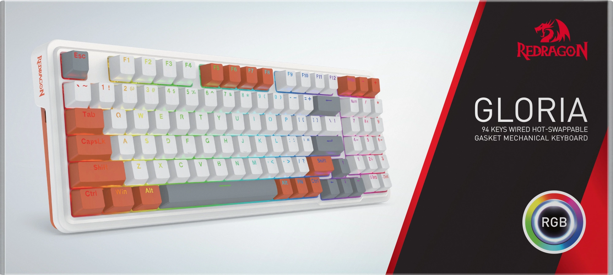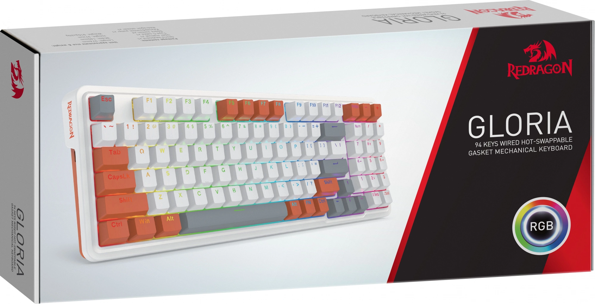 Клавиатура Redragon Gloria механическая белый/оранжевый USB Multimedia for gamer LED (72216) кабель 1.8м