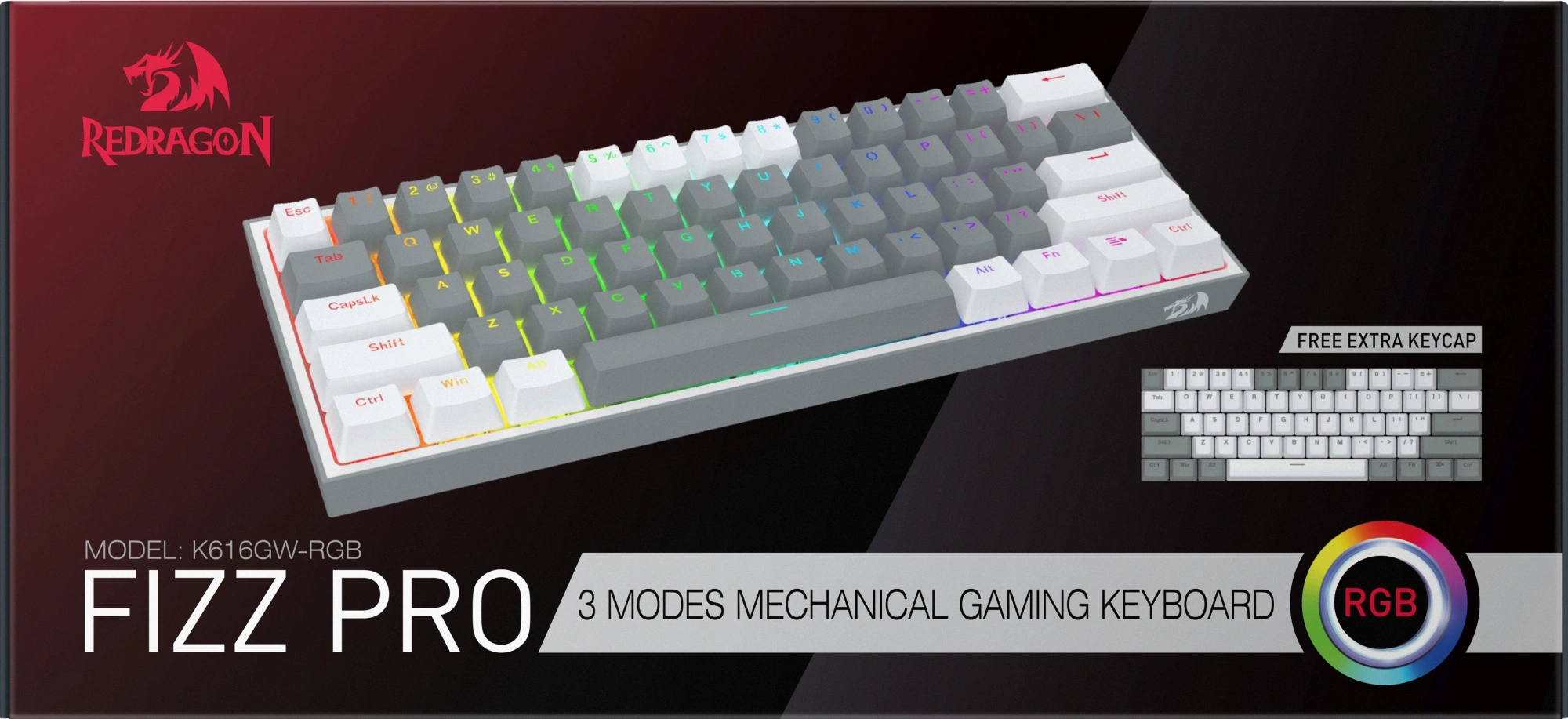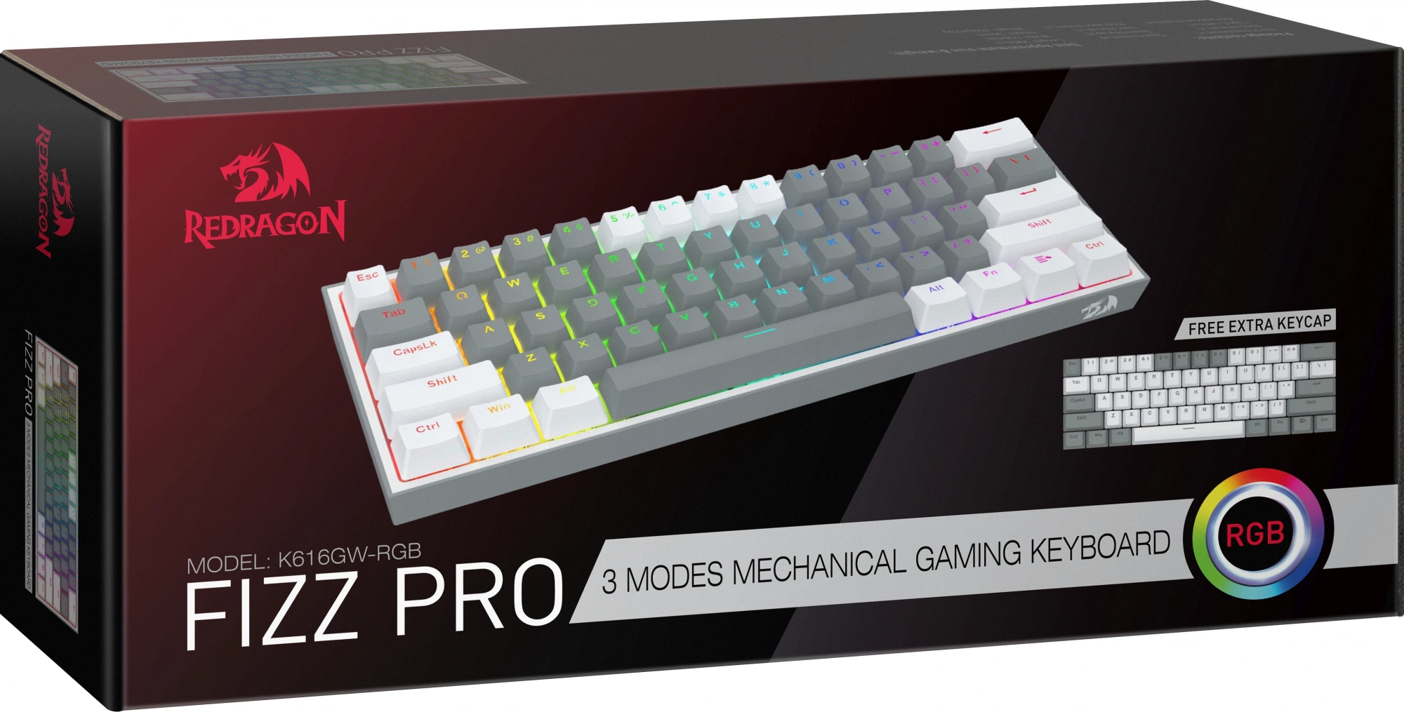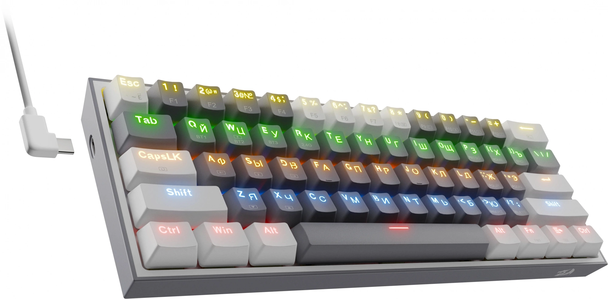 Клавиатура Redragon Fizz Pro механическая белый/серый USB беспроводная BT/Radio Multimedia for gamer для ноутбука LED (70670) кабель 1.8м