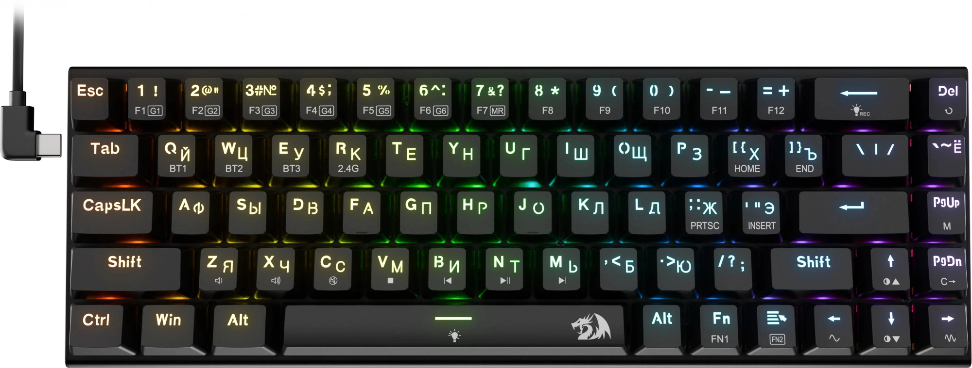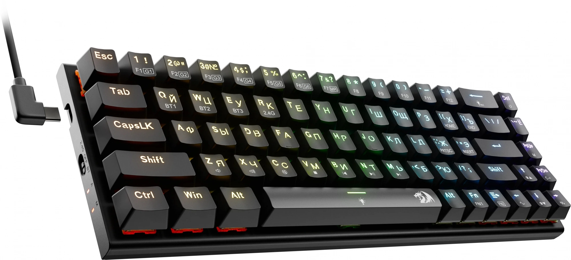 Клавиатура Redragon Ryze Pro механическая черный USB беспроводная BT/Radio Multimedia for gamer LED (71394) кабель 1.8м