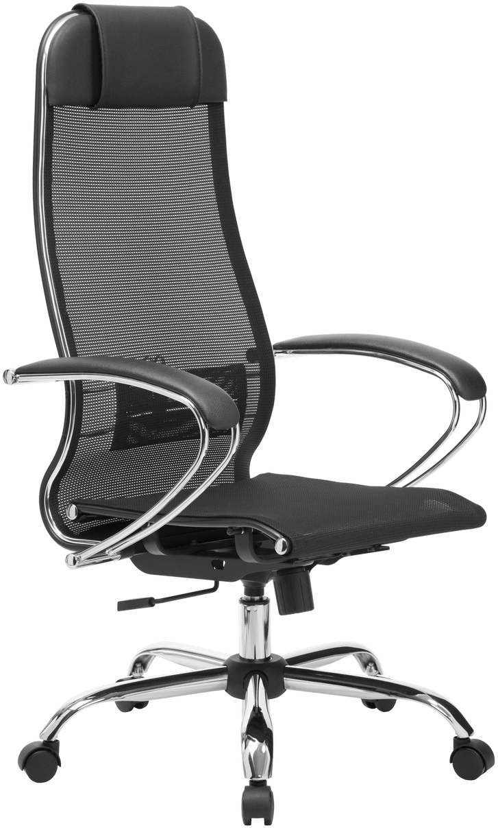 Кресло Метта 12 MPRU черный сиденье черный сетка/ткань с подголов. крестов. металл хром (комплект 1шт)