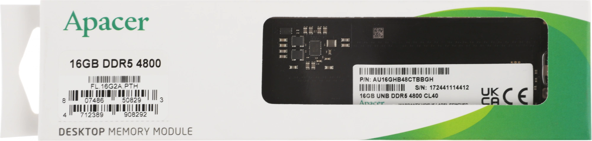 Память DDR5 16GB 4800MHz Apacer FL.16G2A.PTH RTL PC4-38400 CL40 DIMM 288-pin 1.2В Ret
