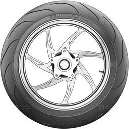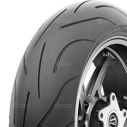 У модели направленный рисунок протектора и двухкомпонентный состав резиновой смеси — мягкие боковины и жесткая центральная часть. Особенность заключается в том, что такой компаунд использовали и для задней, и для передней шины. Так получаем идеальное сцепление с дорожной поверхностью и четкое управление на поворотах.