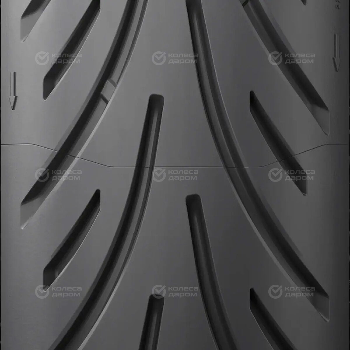 Крупные водоотталкивающие канавки расположены против движения, что гарантирует минимальный риск аквапланирования. А скошенные края как бы прорываются сквозь воду, обеспечивая высокий уровень сцепления.