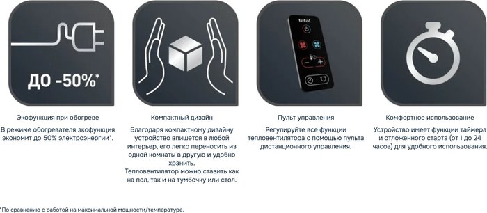 • Дополнительный функционал таймер, обдув без нагрева, пульт ДУ