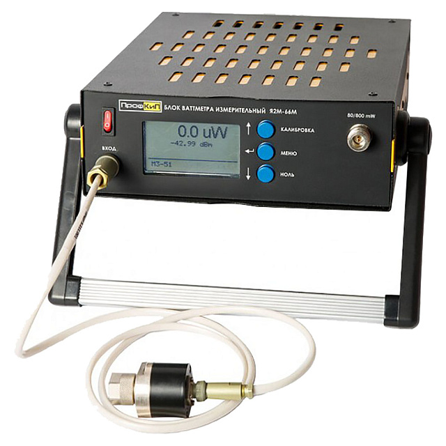 Ваттметр поглощаемой мощности ПрофКиП М3-51 предназначен для измерений среднего значения мощности непрерывных и импульсно-модулированных сигналов. Принцип действия ваттметра основан на преобразовании СВЧ мощности в тепловой вид энергии и измерении образуемой на выходе преобразователя приемного коаксиального (ППК) термоэлектродвижущей силы (термо-ЭДС), которая пропорциональна подведенной к нему мощности СВЧ сигнала. Конструктивно ваттметр поглощаемой мощности состоят из блока ваттметра измерительного ПрофКиП Я2М-66М (БИ) и ППК, подключаемого к БИ.
