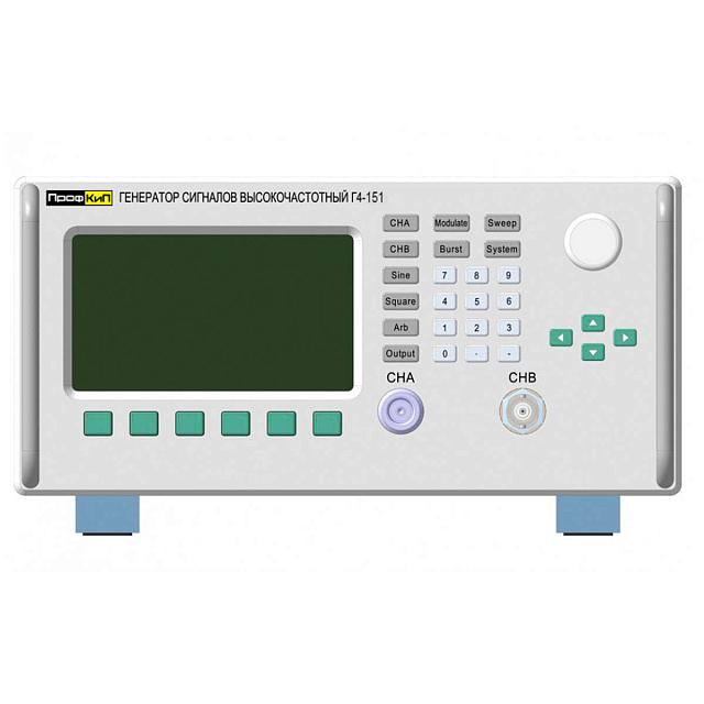 Генератор сигналов высокочастотный ПрофКиП Г4-151 предназначен для воспроизведения высокостабильных по частоте сигналов синусоидальной и прямоугольной формы с различными видами модуляции. На дополнительном выходе генераторы воспроизводят сигналы синусоидальной, прямоугольной и произвольной форм с регулируемым базовым смещением. Кроме того генераторы по основному выходу обеспечивают работу в режиме свипирования - генератора качающейся частоты. Оба выхода у генераторов могут включаться/отключаться независимо, а также работать одновременно. Дополнительно генераторы оснащены выходом TTL уровня. Генератор рассчитан для работы в лабораториях, цехах и ремонтных мастерских, в том числе и подвижных. Прибор широко применяется при разработке, производстве, эксплуатации и ремонте средств связи, имеет низкий уровень амплитудных и фазовых шумов вблизи несущей.