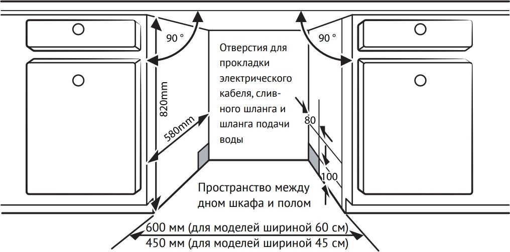 • Размеры для встраивания x60x58см