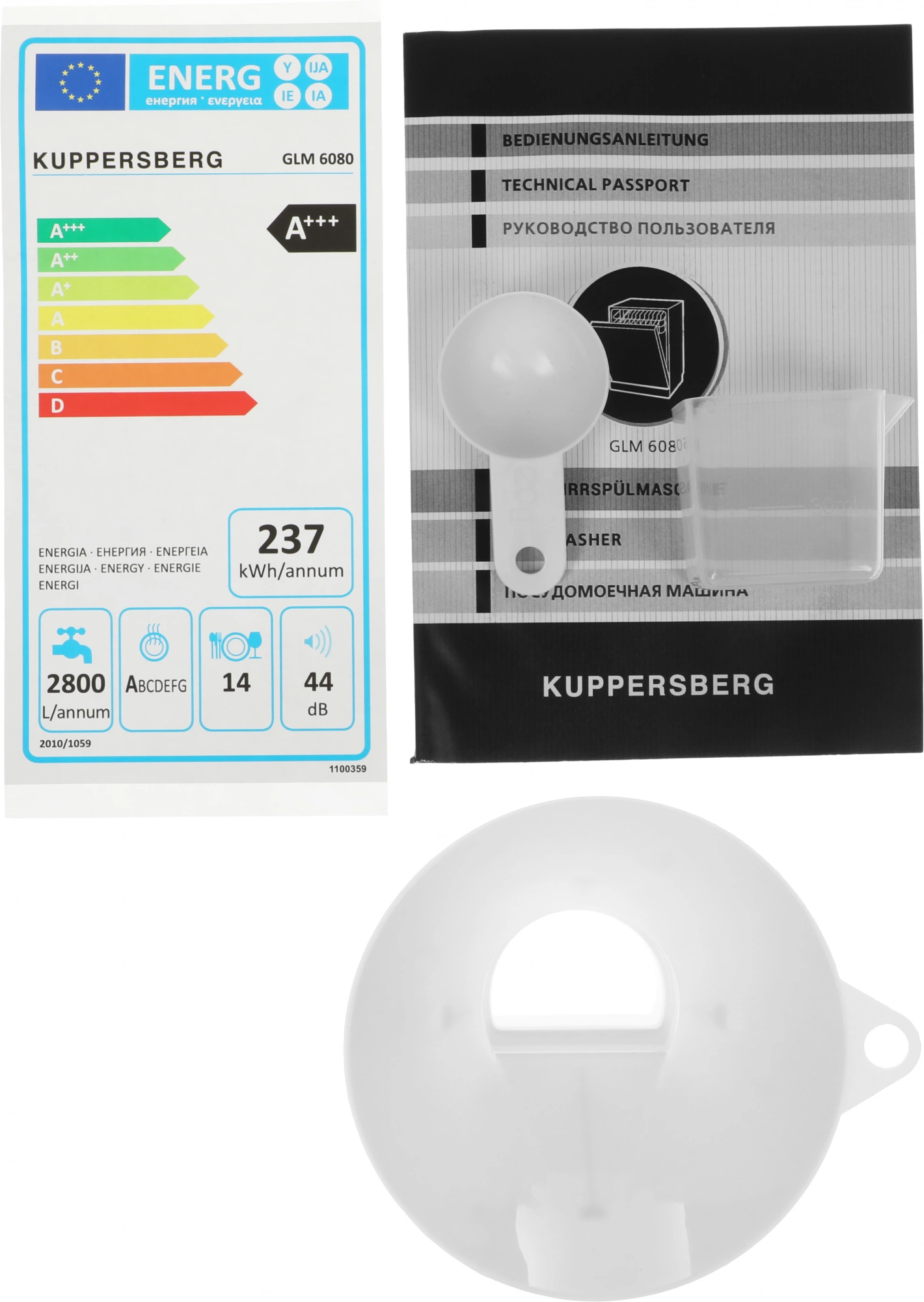 • Внутренняя конструкция корзина для столовых приборов, освещение, полки для кружек, регулируемая по высоте корзина для посуды