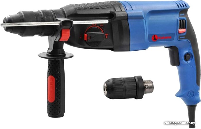 • Оснастка и инструмент в комплекте быстрозажимной патрон, зубило (пика)