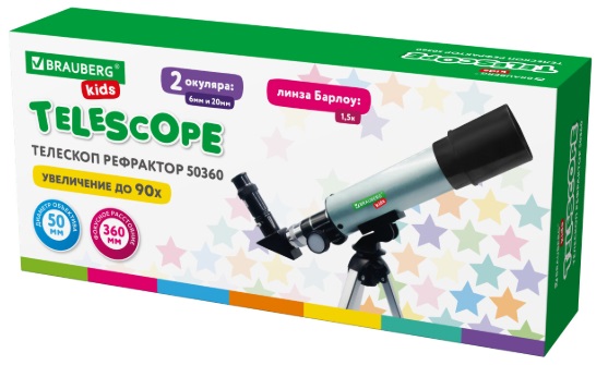 Телескоп рефрактор астрономический настольный BRAUBERG KIDS, увеличение 90х