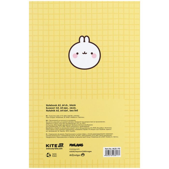 - Модель А5 Molang термобіндер, 64 аркуші, нелінований