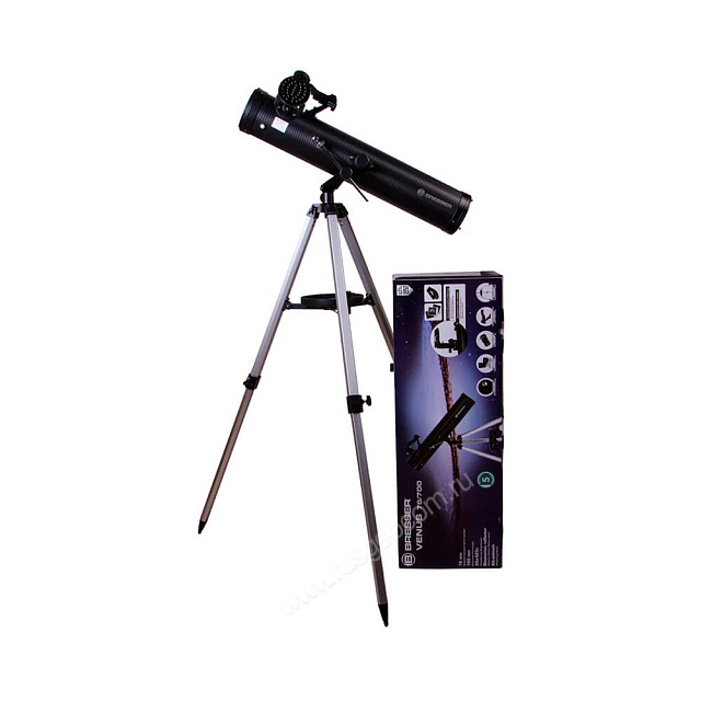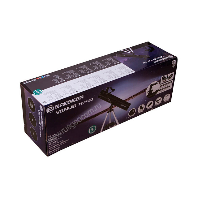 Телескоп Bresser Venus 76/700 AZ подойдет начинающим любителям астрономии, которые хотят подробно изучить объекты Солнечной системы. Это прекрасный оптический инструмент для лунных и планетарных наблюдений. Он отличается минимальным хроматизмом, простым управлением и отличным изображением. В комплект поставки включен держатель для смартфона. С его помощью на камеру телефона вы сможете сделать свои первые снимки космоса.